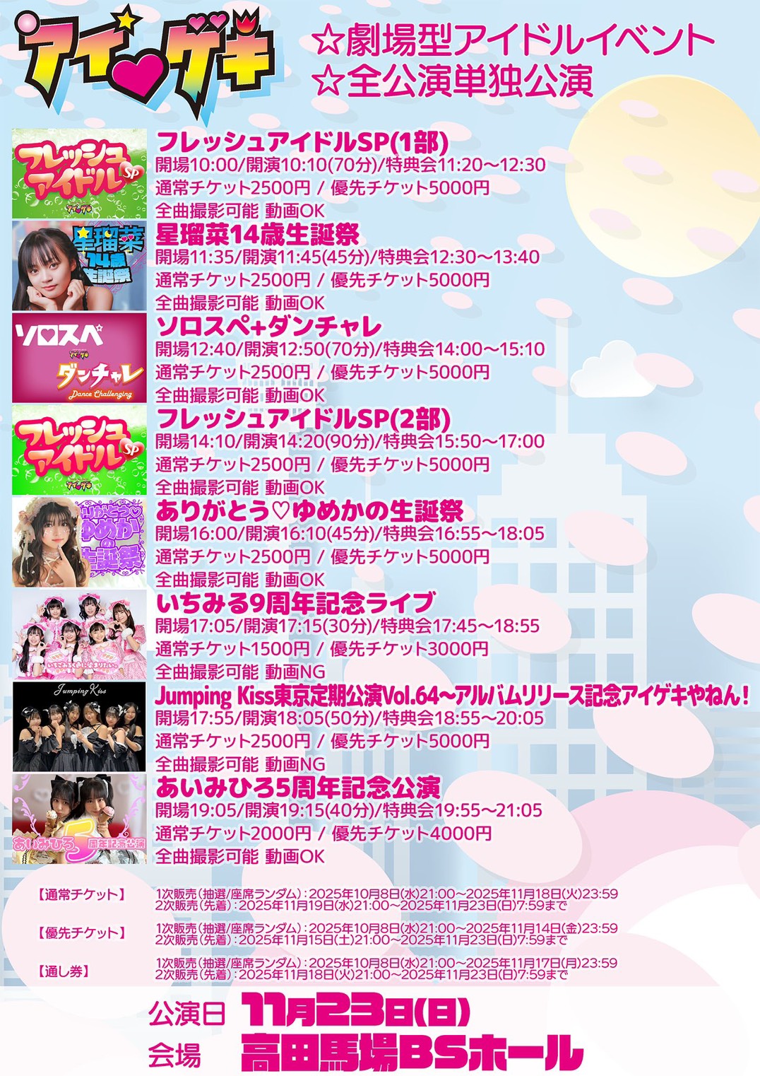 event 2025.11.17 2025年11月23日(日) アイ♥ゲキ 11/23(日)出演:white superiors アイ♥ゲキ フレッシュアイドルSP(1部) :white superiorsソロスペ+ダンチャレソロスペ:NANANE (white superiors)ダンチャレ:Yua/Hiyori (white superiors) 会場:高田馬場BSホール チケット販売ページt.livepocket.jp/e/igeki2025110… Post Share Hatena Pin it 2025年11月9日(日) モールコンサート2025 前の記事
